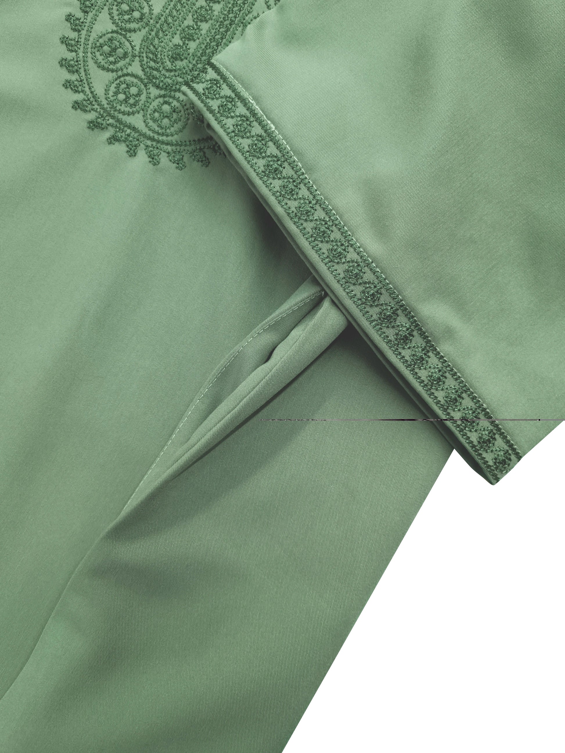 Chilaba AMARUÉ – Verde Cedro | Edición Limitada con Bordado a Mano